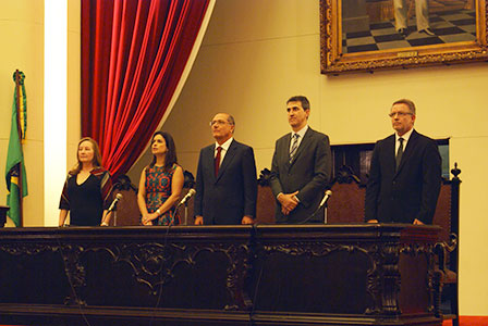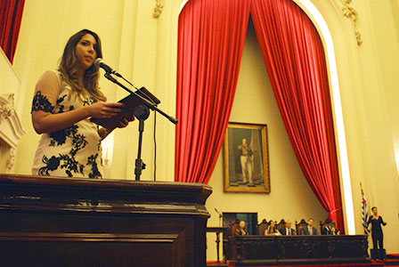 A Defensora Jéssica Maria Benedetti, primeira colocada do VI Concurso de Ingresso, discursou em nome da nova turma. ”Para que possamos honrar a nobreza da Defensoria Pública e dela fazer nossa mais bela razão de viver, queridos colegas, é necessário lutar. ‘Luta’, que, curiosamente, num mundo de machismos, é substantivo feminino. ‘Luta’ que carrega as causas de toda a sorte de excluídos: negros, índios, pessoas com deficiência, sofrimento mental ou que fazem uso problemático de drogas, comunidade LGBTT, crianças e adolescentes em conflito com a lei, mulheres vítimas de violência, idosos, consumidores enganados, encarcerados, institucionalizados de todo o gênero”.