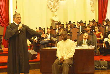 Antes do interrogatório de Preto Amaral (interpretado pelo ator Rogério Brito), o Juiz José Henrique advertiu à platéia de jurados que o acusado possui o direito de permanecer em silêncio e advertiu, expressamente, que o ditado “quem cala, consente” não tem lugar em um tribunal.