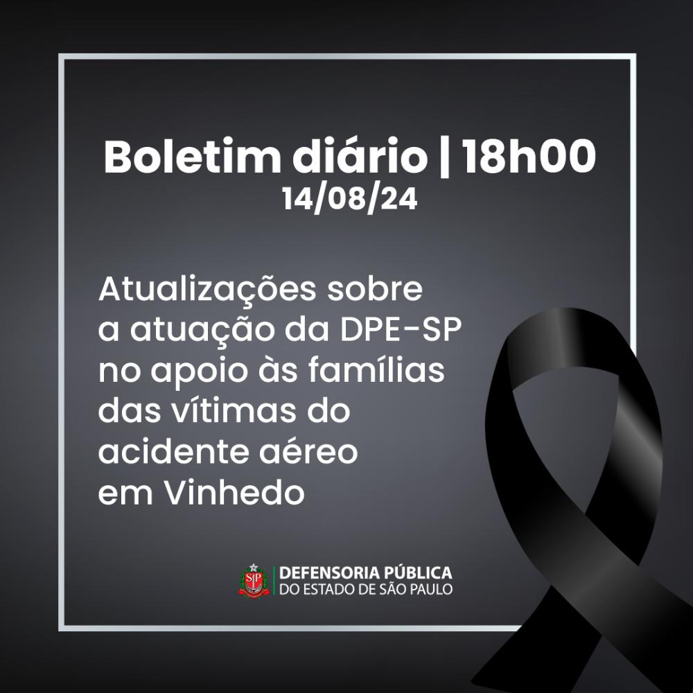 A Defensoria Pública do Estado do Paraná (DPE-PR) e a Defensoria Pública do Estado de São Paulo (DPE-SP) manifestam profunda solidariedade aos familiares das vítimas. Estavam a bordo da aeronave quatro tripulantes e 58 passageiros.